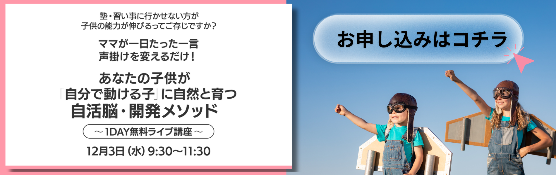 さぁ!市野瀬メソッドで大切なお子様の”集中力””創造力””思考力”など、