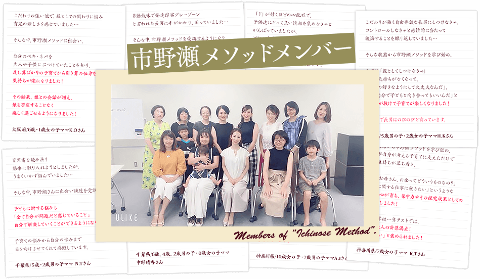 現在、市野瀬メソッド本講座で子育てを学び、実践し、子供の夢を叶える脳を開発できるママとして日々を楽しんでいる受講生たちがいます。